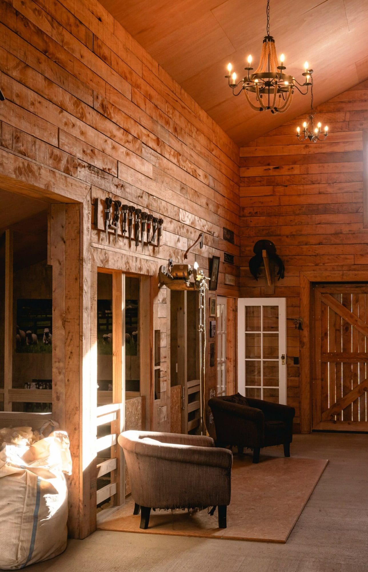 Having worked for five years on various projects with the owner, including restoring a 150 year old villa on the same property, Brook understood the client’s vision well. The barn needed to accommodate horse stables, sheep pens, shearing platforms, a saddle room, and a stylish space for farm tours and tastings.