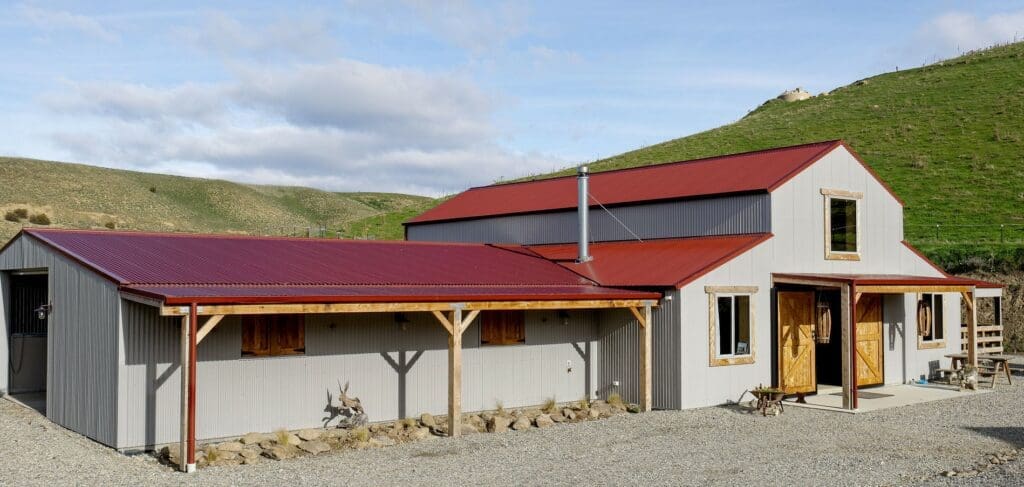 Home to a rare breed of Swiss sheep and award winning wine, Rose Creek Farm in Cromwell has welcomed a new barn that is both fetching and functional. The 360m² farm building was constructed using three kitset sheds, a first for builder Brook Carr from Brook Carr Building Limited.