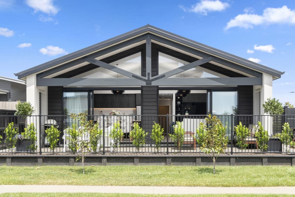 When Daniel Rowley-Anderson built this elegant Papamoa home, he didn’t expect to spend quite so much time talking to the neighbours. But with 10-metre exposed timber trusses lending the home a stunning street appeal, the attention came as no surprise.