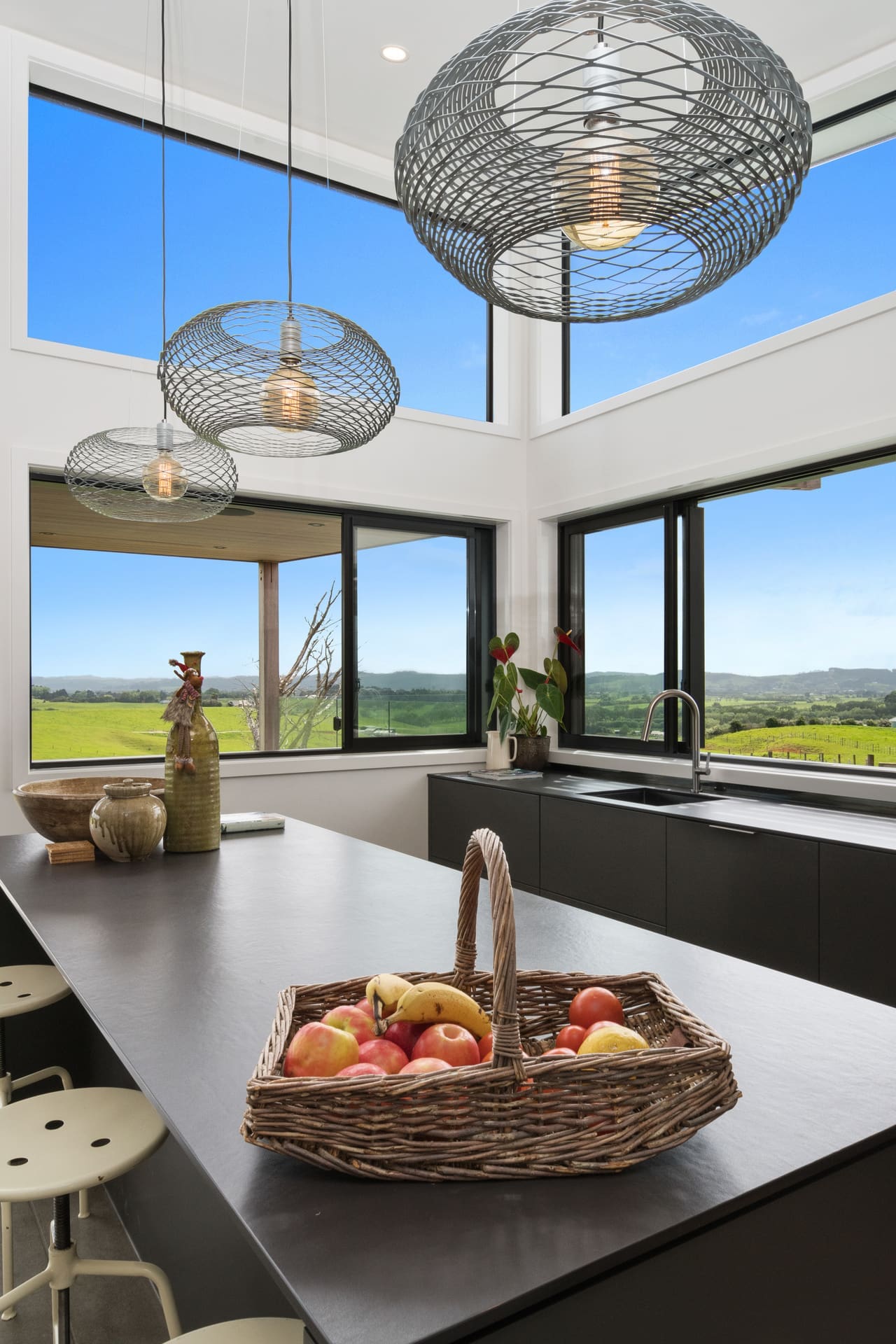 Anne and her husband, Glenn, live in a postcard-perfect setting, overlooking farmland and the Kaipara Harbour. “We wake up in the morning and there is mist in the valley while the sun is coming up. We have a beautiful rural outlook,” says Anne.