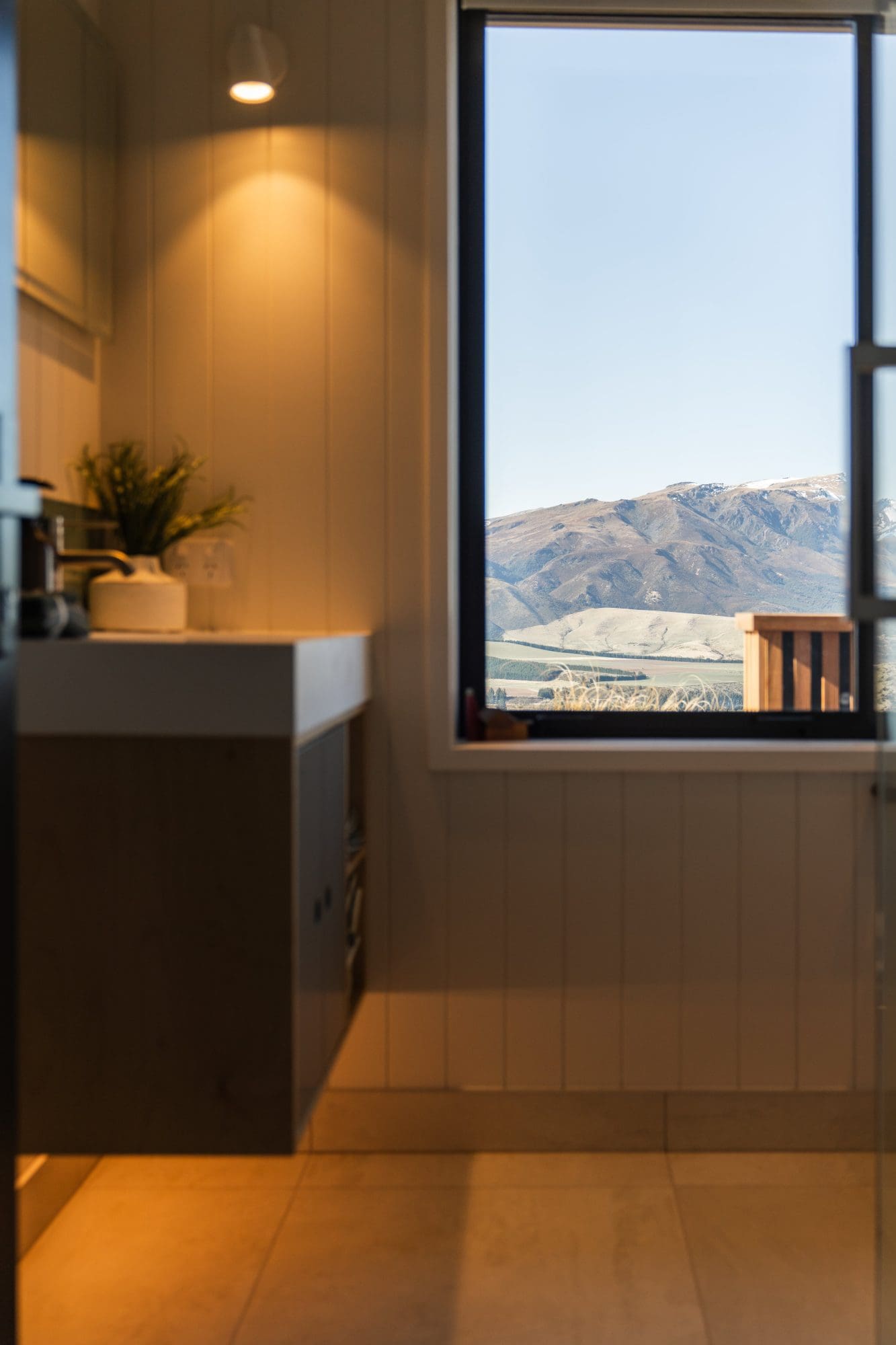The Leslie Construction team – charged with joining the dots in this remote, high-altitude environment – came well equipped with tools, but also puffer jackets and beanies. “There aren’t many houses in New Zealand that are 700 metres above sea level,” explains John. “Dave and his team were totally invested. They shared my enthusiasm and insistence on quality.”