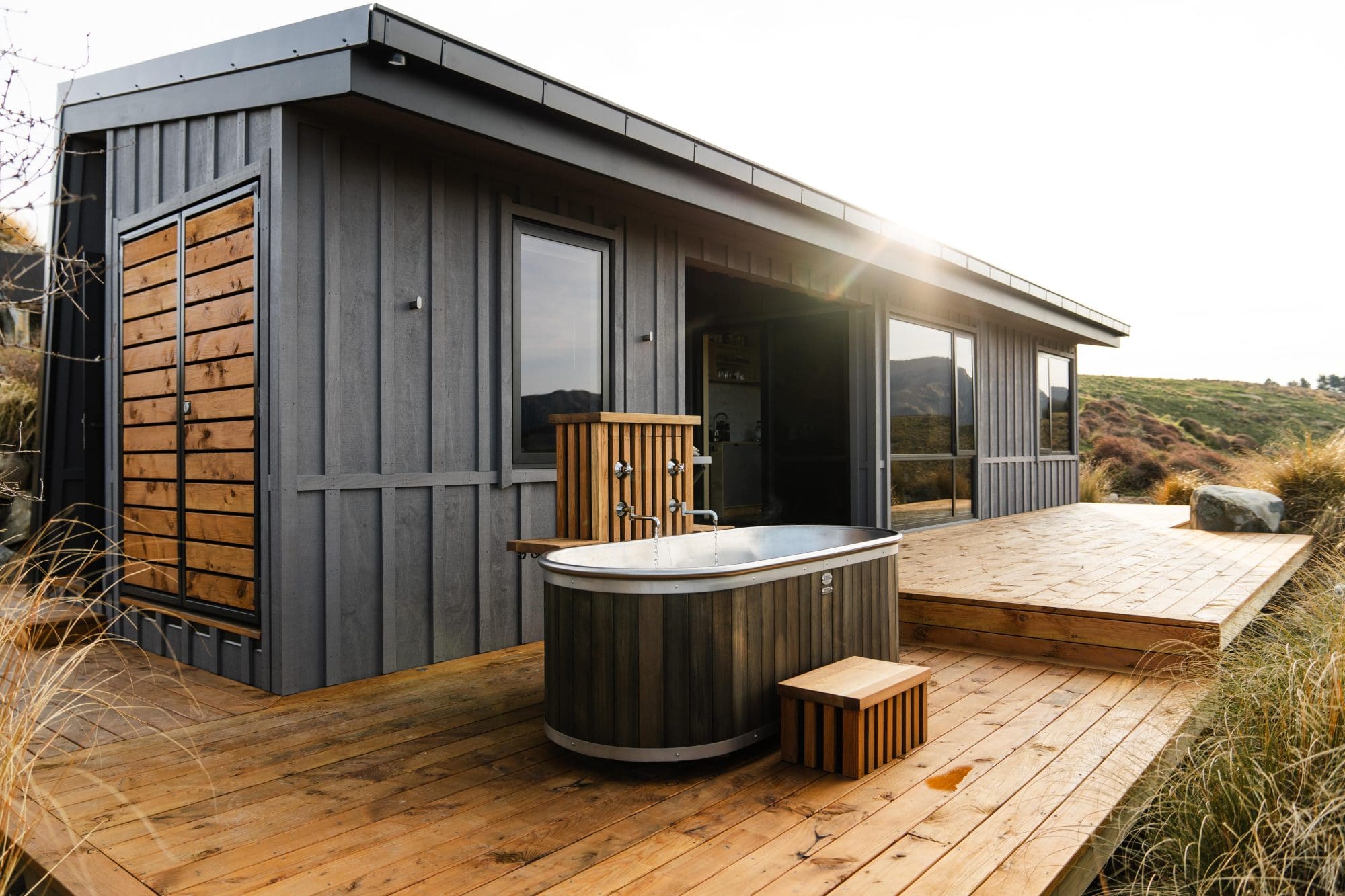 On the deck made from fallen Douglas Fir off the farm, a bathtub is the perfect spot for full immersion in the landscape. “We get such incredible feedback from guests – part of that is location, but part of it is build quality,” says John, who now catches up with Dave for deerstalking expeditions and a quiet beer.