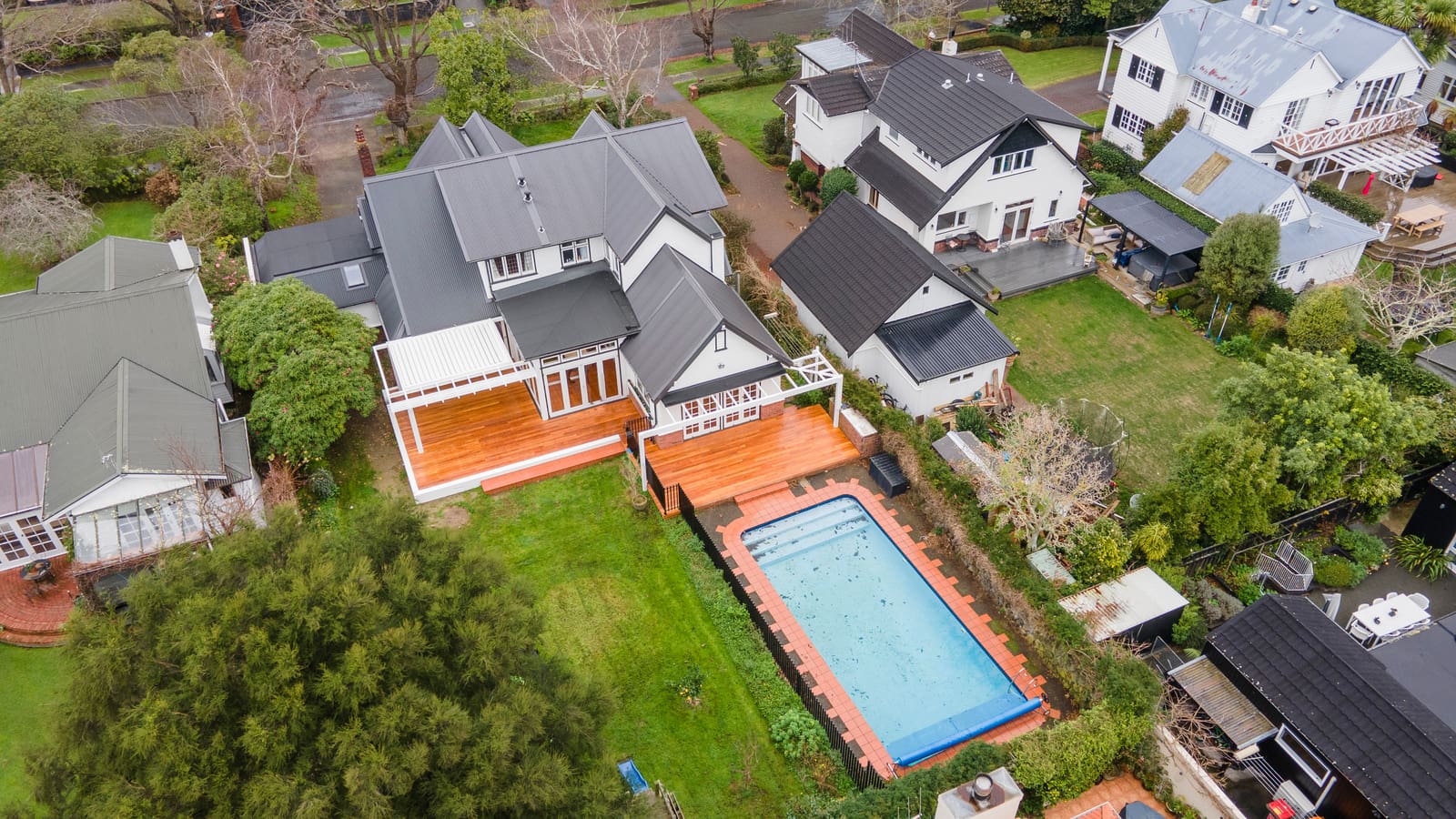 Set on a prestigious street lined with elms, where interwar planning rules dictated a set-back from the road and no front fencing, this Palmerston North house features half-timbered gables, stucco cladding and red-brick detail. Inside, a striking timber staircase in the lobby, matai flooring and leadlight windows speak of pure craftsmanship.
