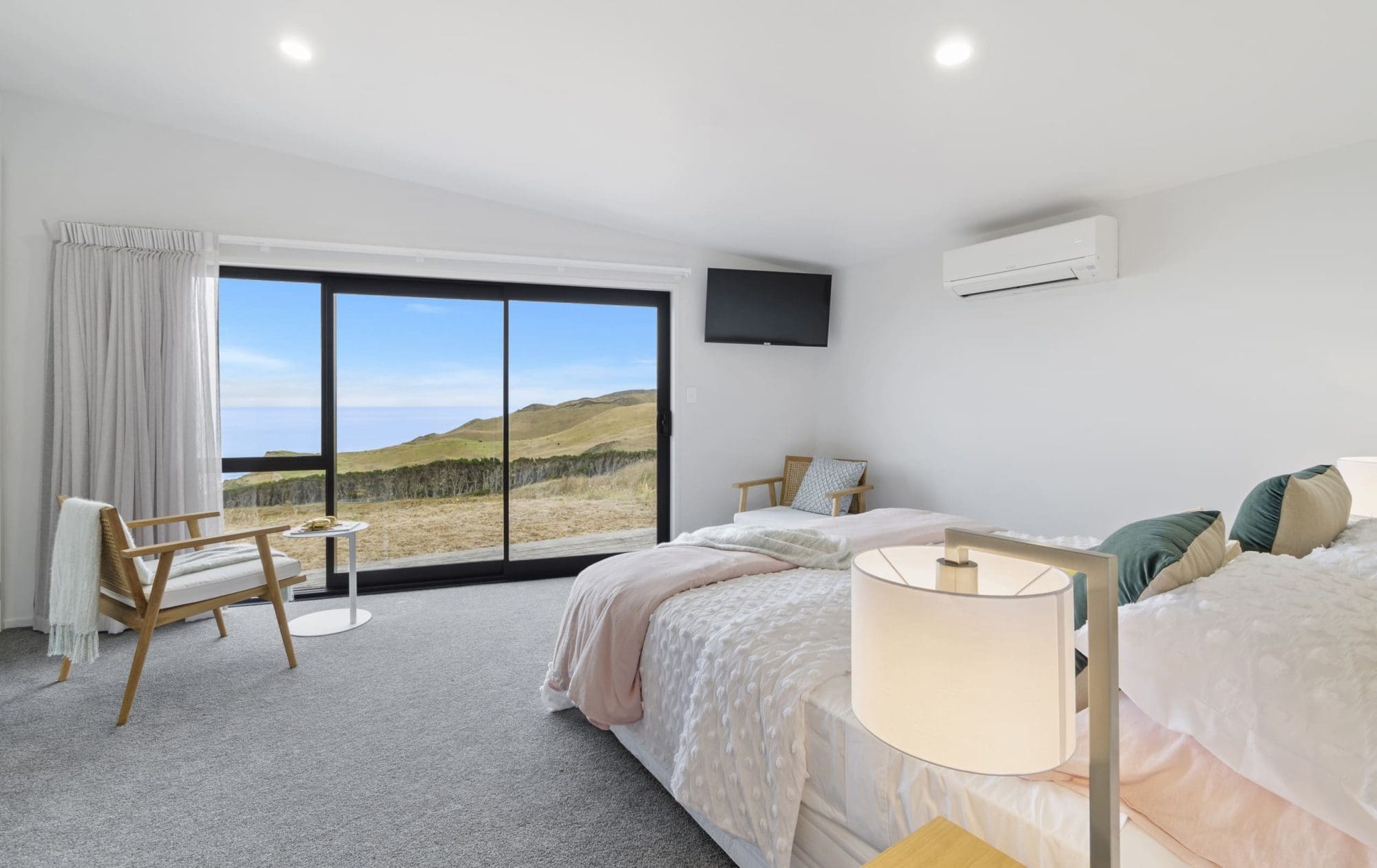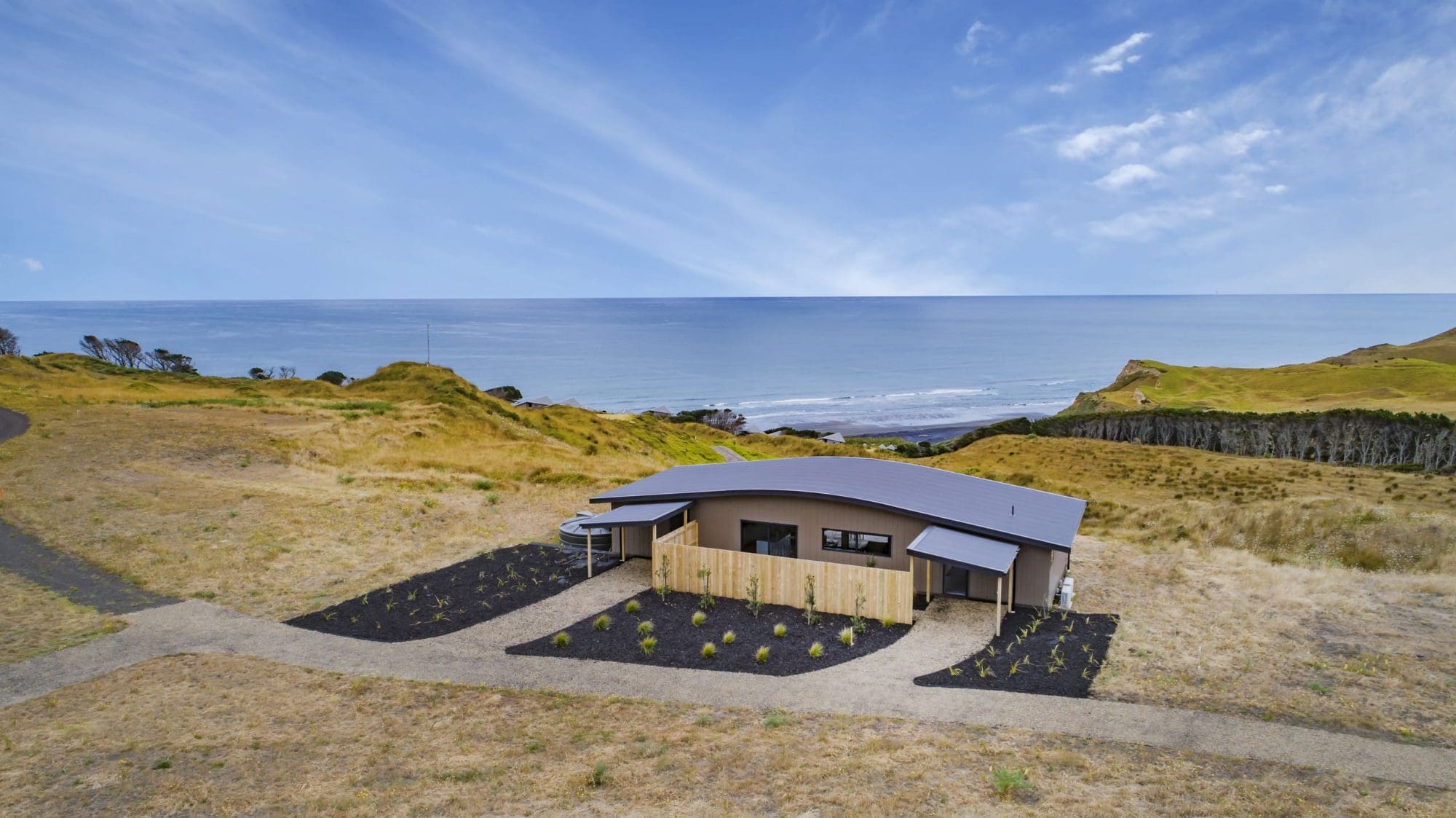 Gavin himself created the design to blend seamlessly with the surrounding landscape, the large windows across the front of the property showcasing the stunning outside.