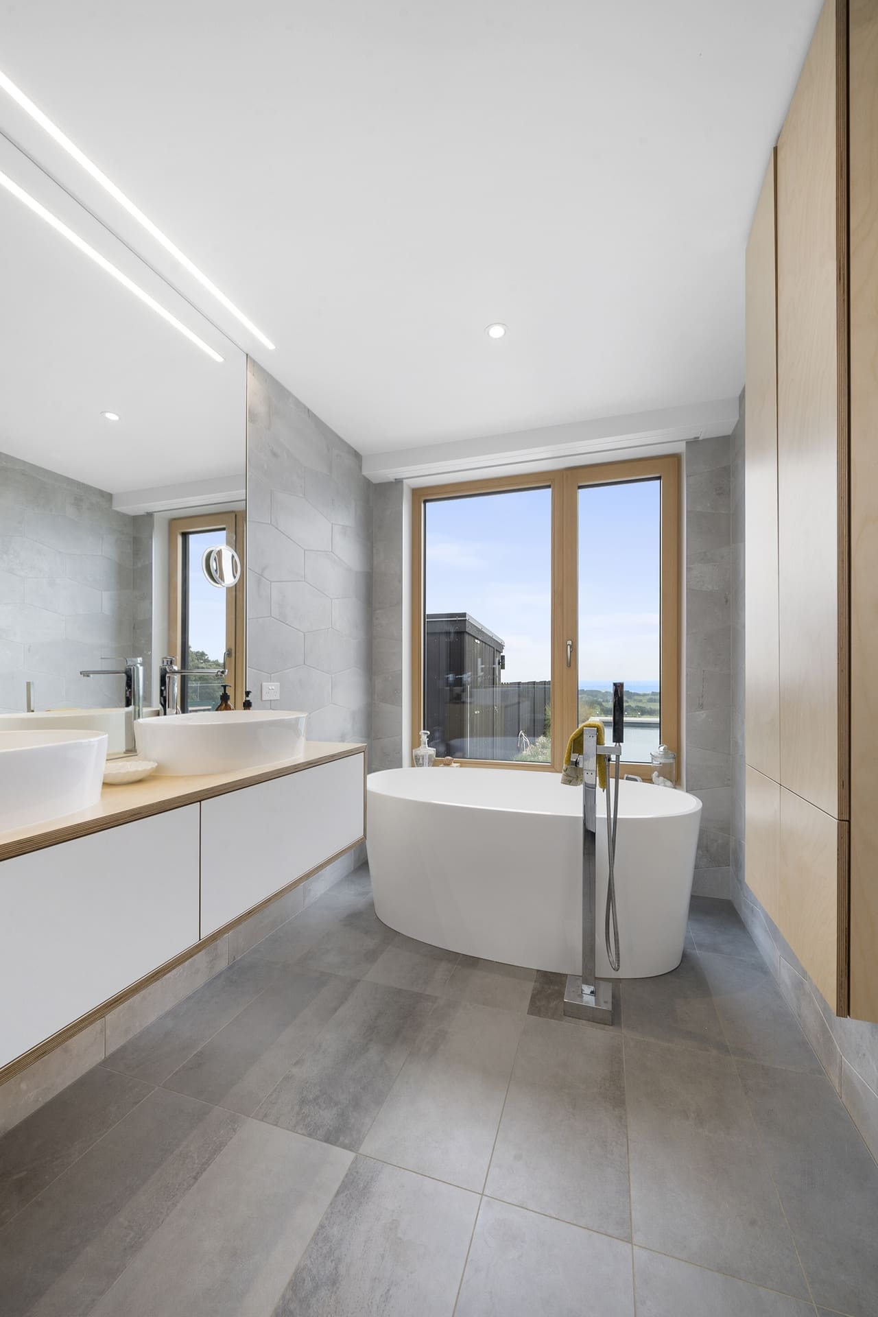 There’s beauty alongside brains. Cedar graces the exterior and a veranda encircles the entire home. Ceilings are up to 3.2m high and a corridor longer than a ten-pin bowling lane services all rooms. Attention to detail is striking. “My team did a beautiful job with the woodwork, including around the windows,” says Mike.