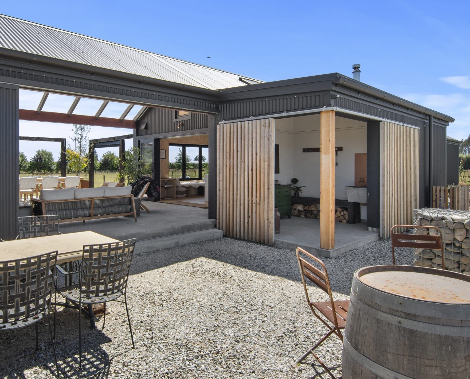 The expansive 151m² property, set on five acres in rural Motueka, was expertly built by Garry Nott and his team at Tasman Homes (Nelson) Limited. Stretching 35 metres long, the home offers a warm, inviting atmosphere where raw materials and natural imperfections are celebrated.