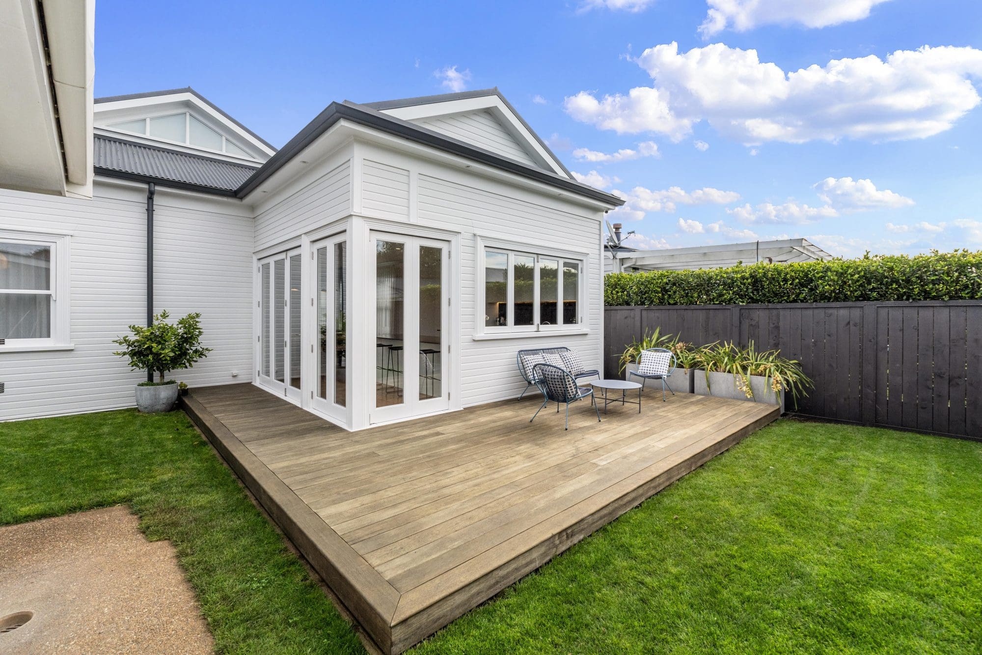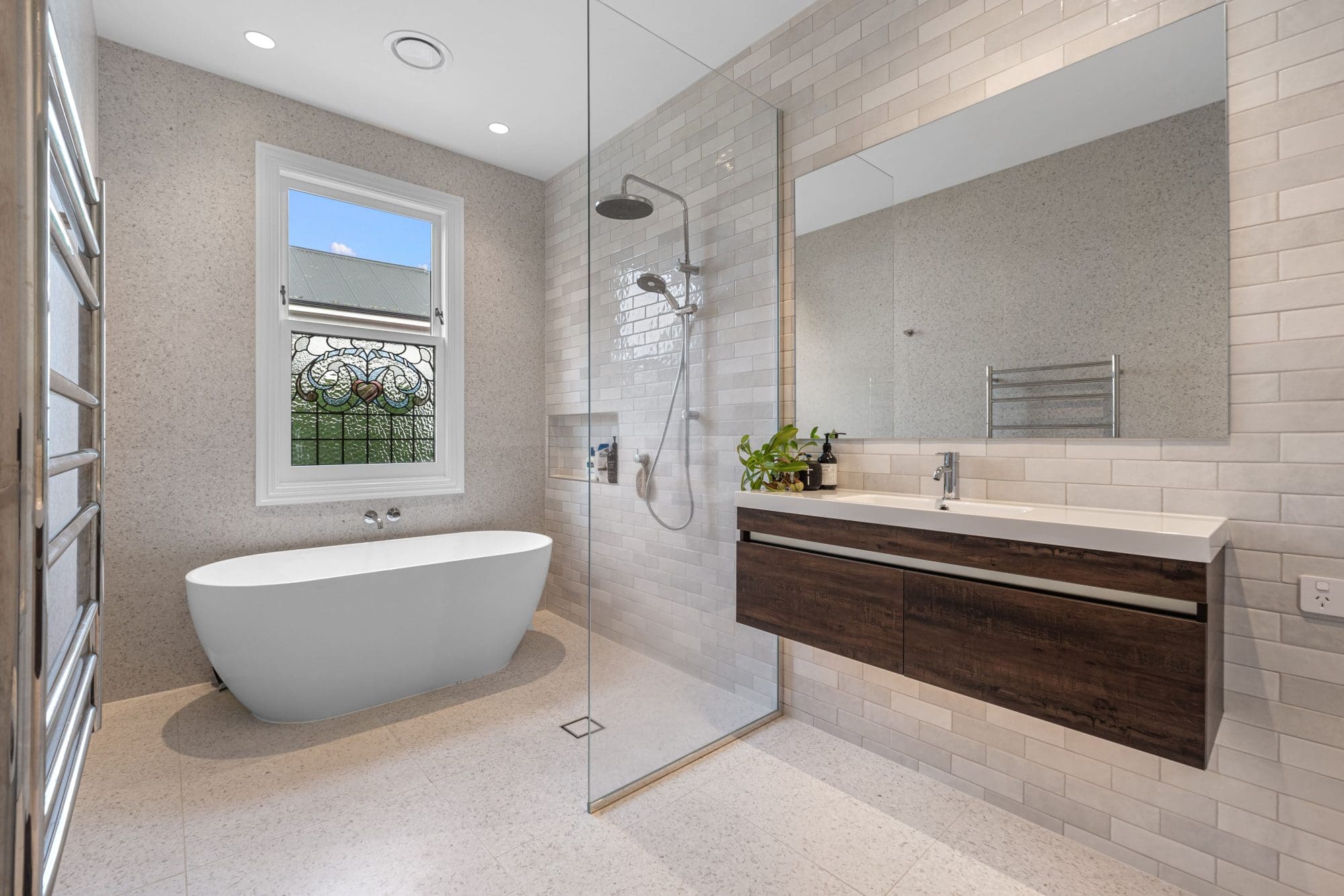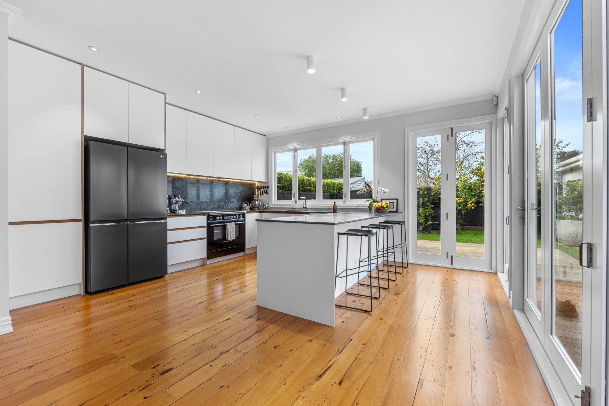 Builder Joseph Allen of JRA Construction says the 12-month makeover involved removing the back half of the home to build a modern extension. With only the front façade left intact, the rest was stripped down to its ‘bare bones’ and reimagined to merge the owners’ creative requirements with practical needs. Internal walls were reconfigured to create a new entranceway, master ensuite, and walk-in robe.