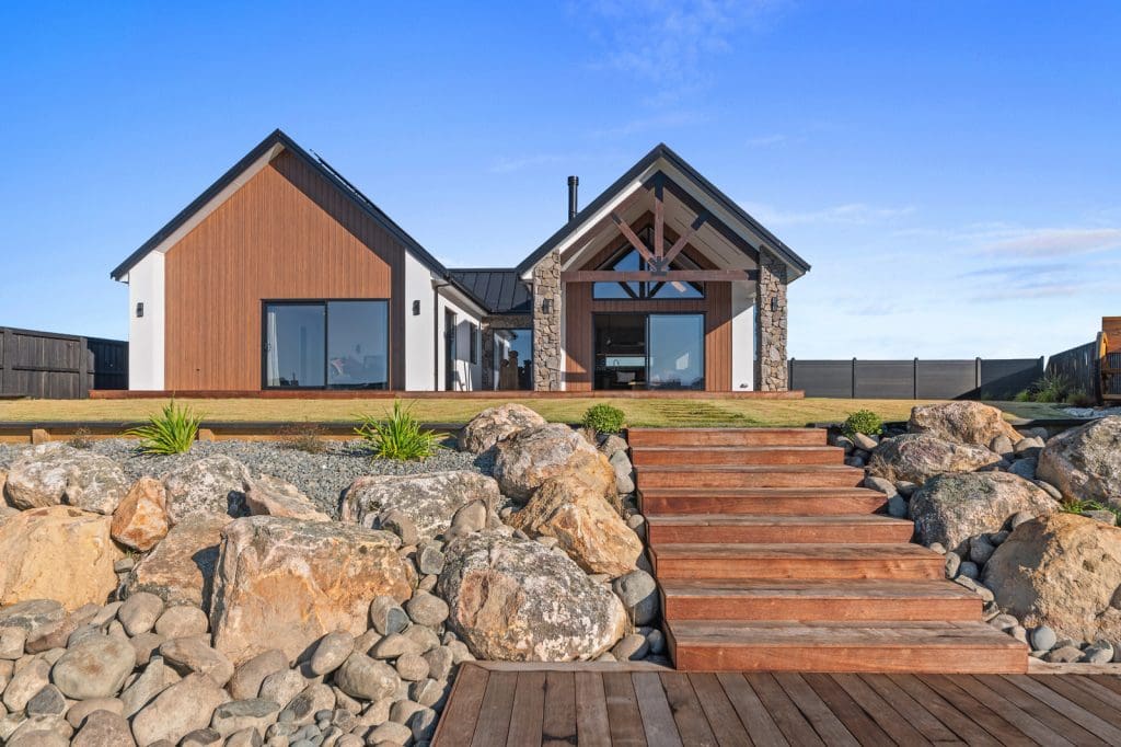 In the evenings, after a day’s skiing at Methven and sundowners on the deck while watching kayakers drift by, a wood-burner in the living area becomes a flickering focal point. Whether built for holidays or built for homemakers, life at the lake is good.