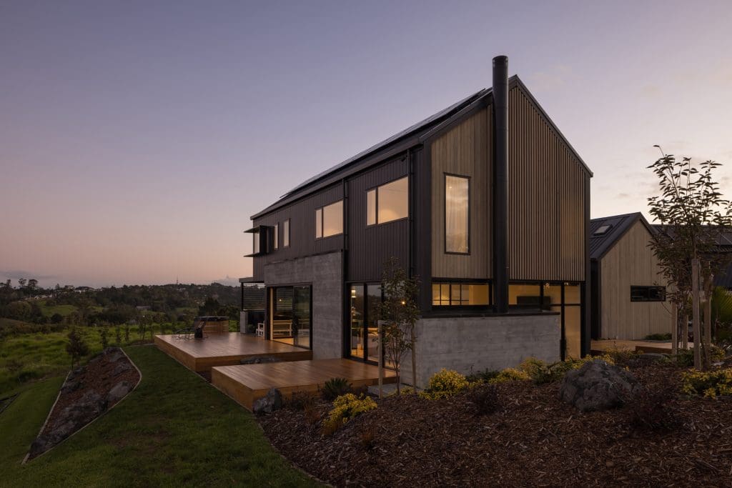 This lifestyle block called for a modern farmhouse, where traces of the rural vernacular in shed-like forms met a contemporary palette of durable materials. The problem for builder Mike Imre of IBL Residential was that this land on a sub-divided farm had once been used as a dumping ground. As soon as he started cutting into the site, years of junk began to appear. “That put us on the back foot for a while,” he says.